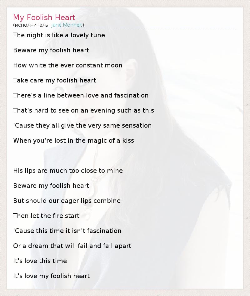 А как ты думаешь, о чем песня "My Foolish Heart" ?