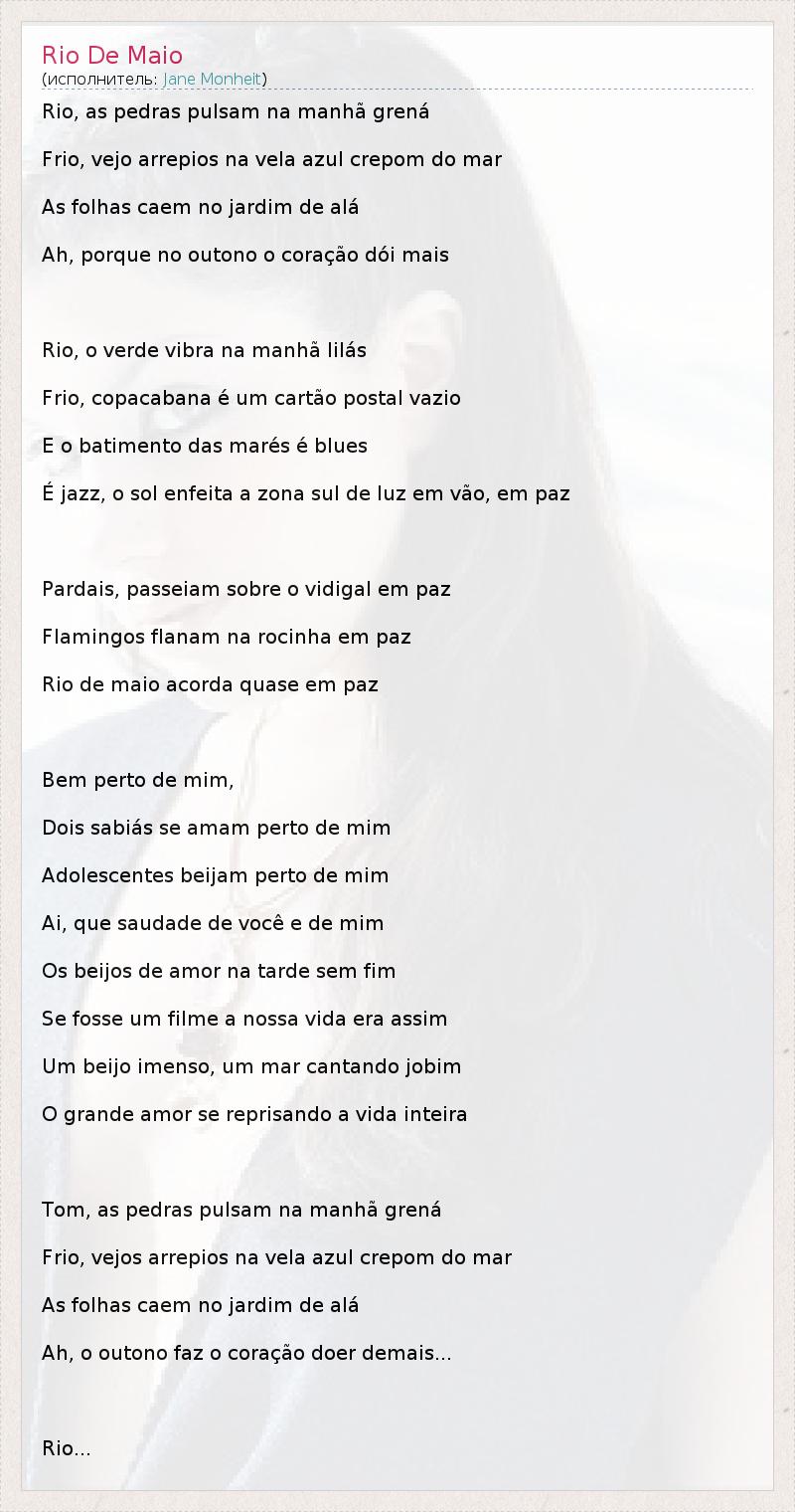 А как ты думаешь, о чем песня "Rio De Maio" ?