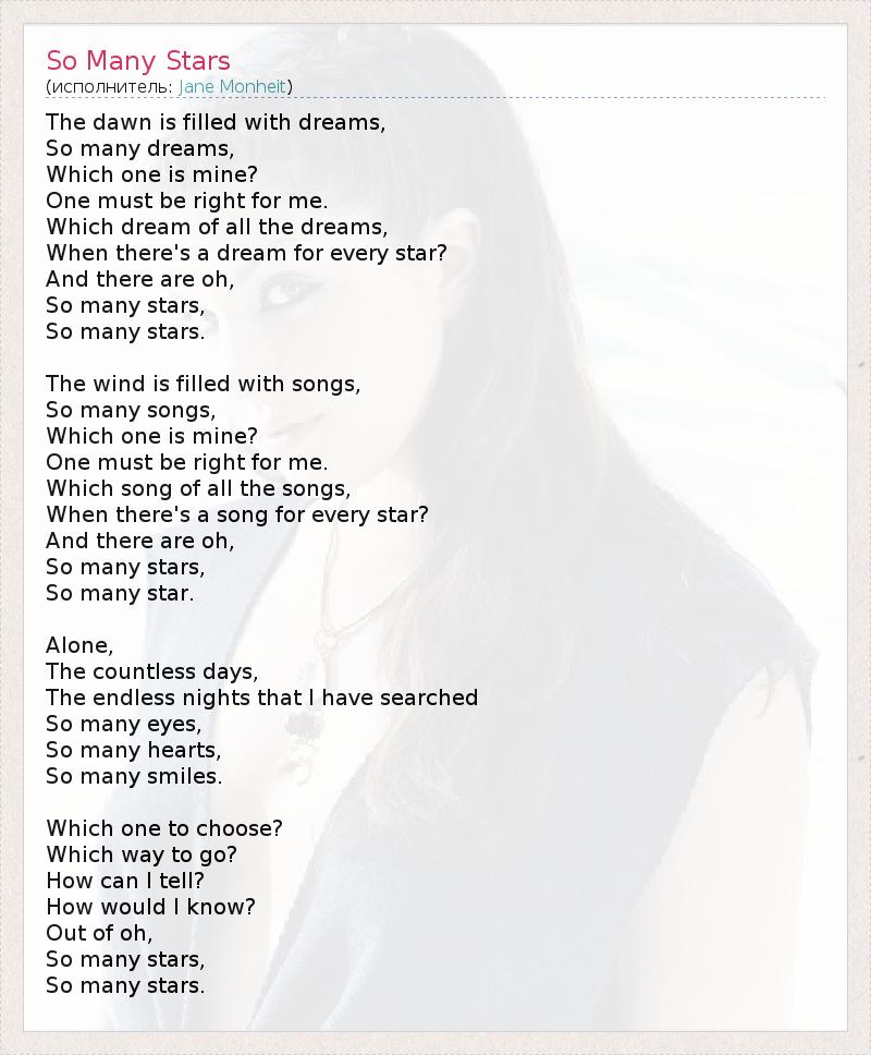 А как ты думаешь, о чем песня "So Many Stars" ?