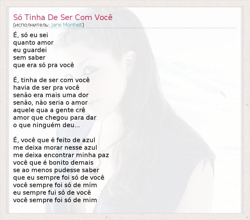 ГлавнаяИсполнителиJane MonheitSó Tinha De Ser Com Você