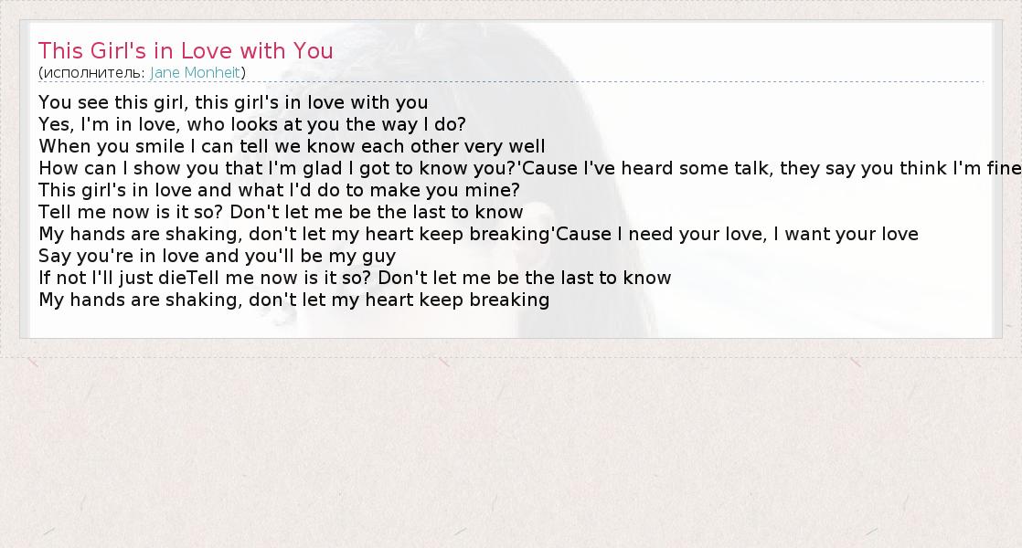 ГлавнаяИсполнителиJane MonheitThis Girl's in Love with You