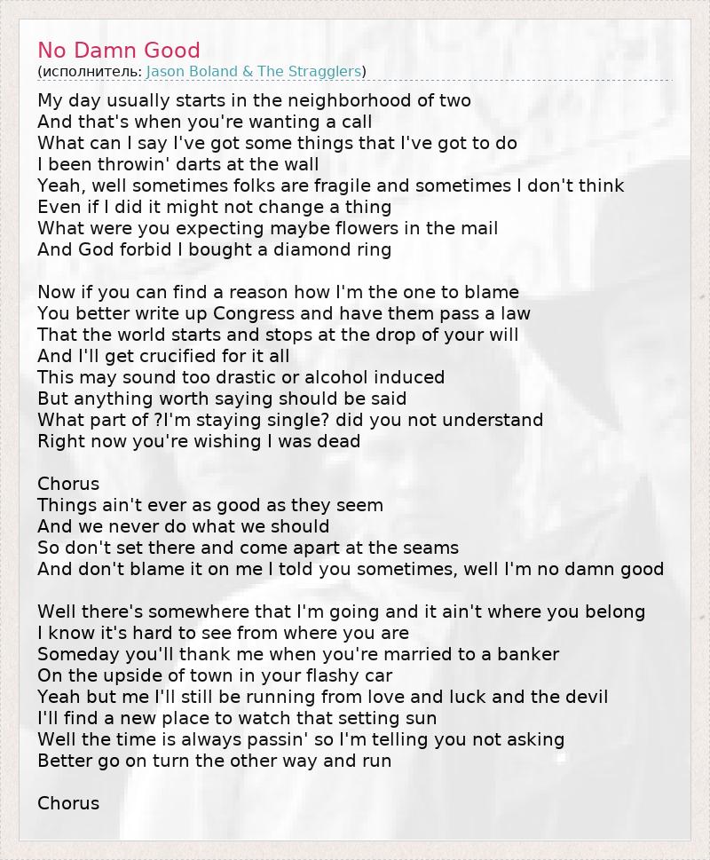 А как ты думаешь, о чем песня "No Damn Good" ?