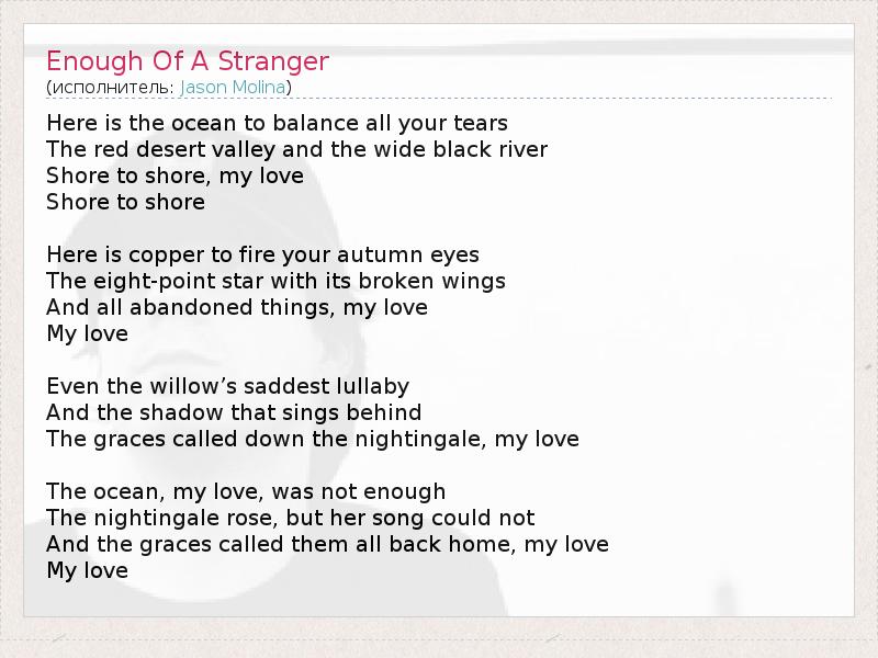 А как ты думаешь, о чем песня "Enough Of A Stranger" ?