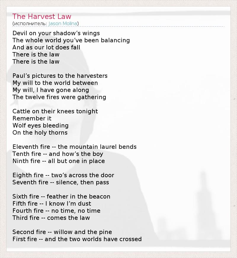 А как ты думаешь, о чем песня "The Harvest Law" ?