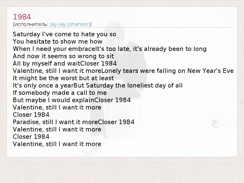 Valentine, still I want it moreLonely tears were falling on New Year's Eve