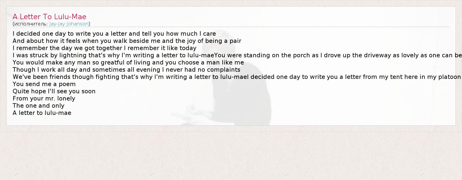 А как ты думаешь, о чем песня "A Letter To Lulu-Mae" ?