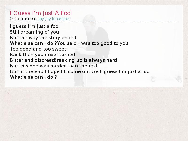 А как ты думаешь, о чем песня "I Guess I'm Just A Fool" ?