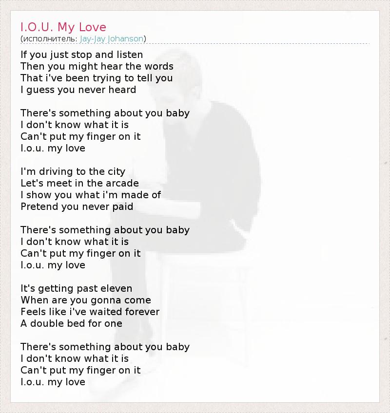 А как ты думаешь, о чем песня "I.O.U. My Love" ?
