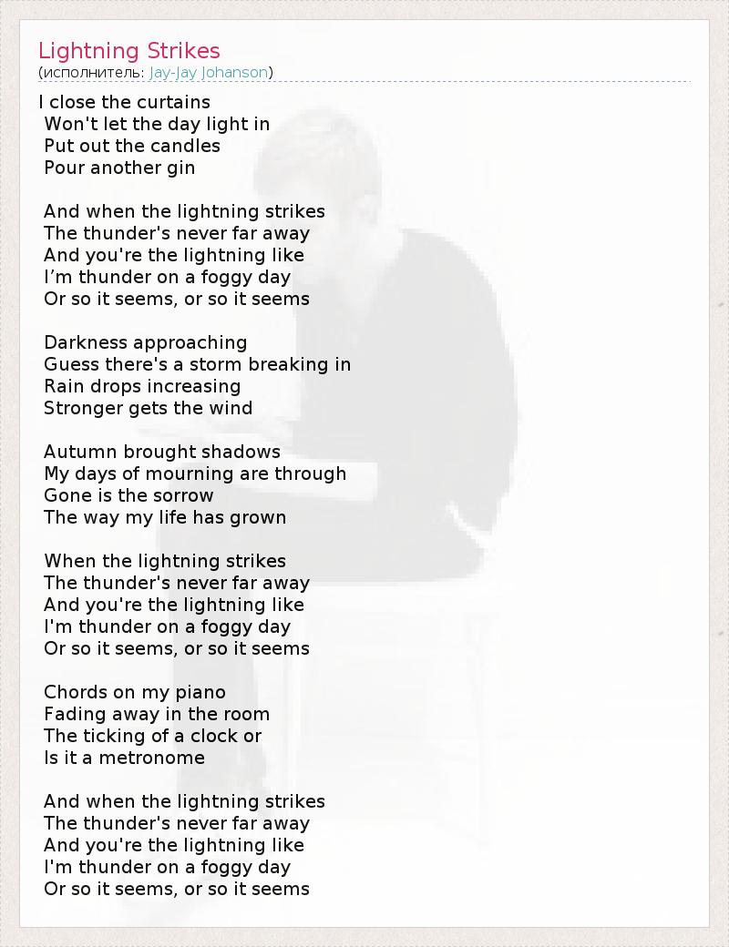 А как ты думаешь, о чем песня "Lightning Strikes" ?