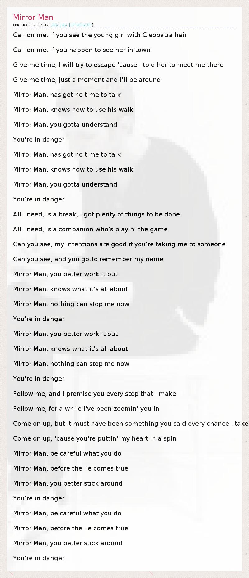 А как ты думаешь, о чем песня "Mirror Man" ?
