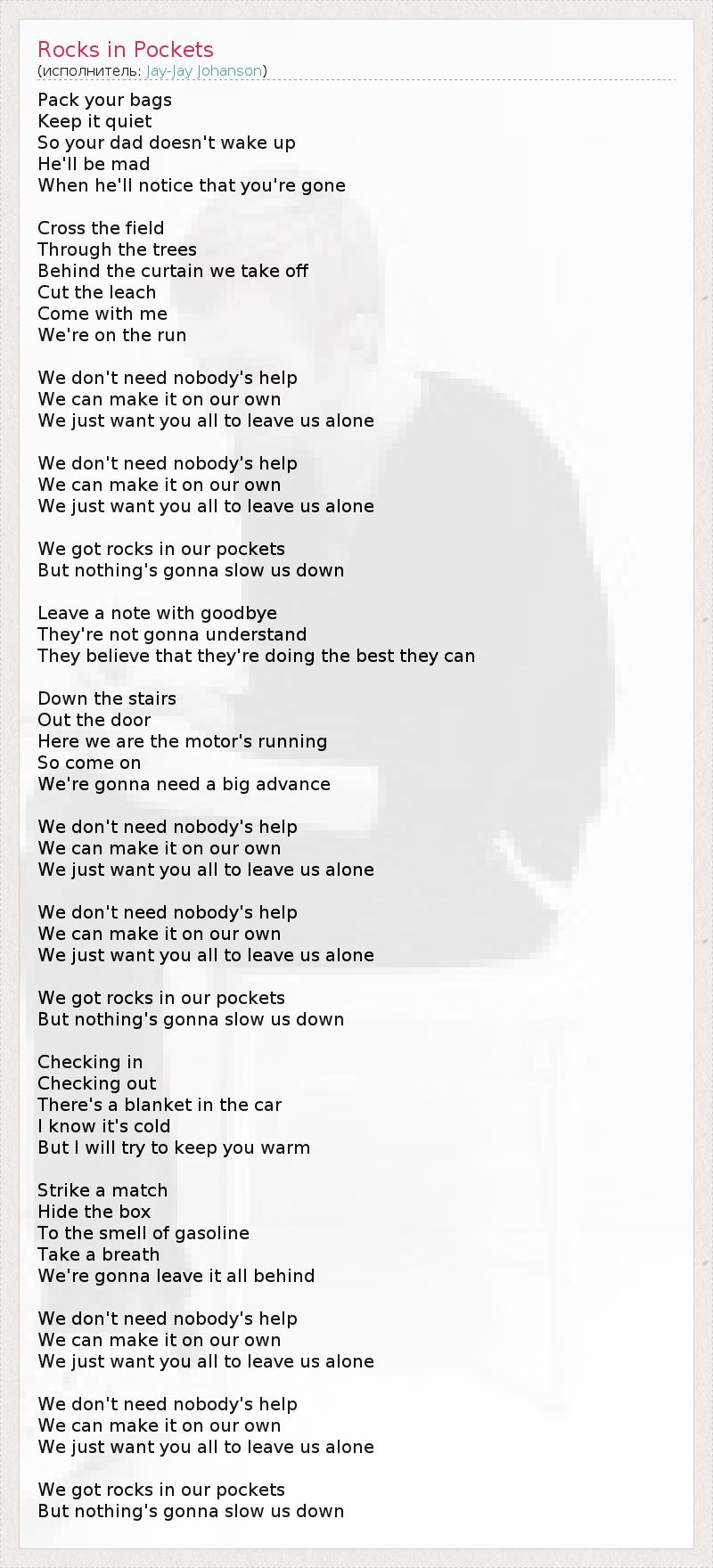 А как ты думаешь, о чем песня "Rocks in Pockets" ?