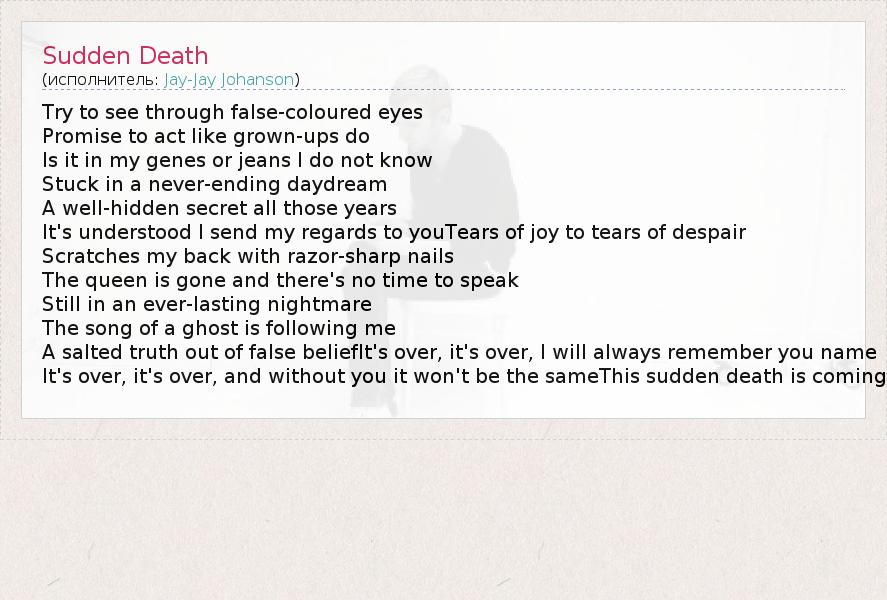 А как ты думаешь, о чем песня "Sudden Death" ?