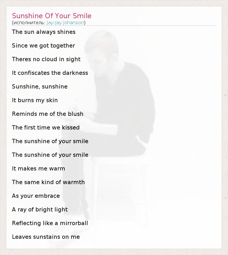 А как ты думаешь, о чем песня "Sunshine Of Your Smile" ?