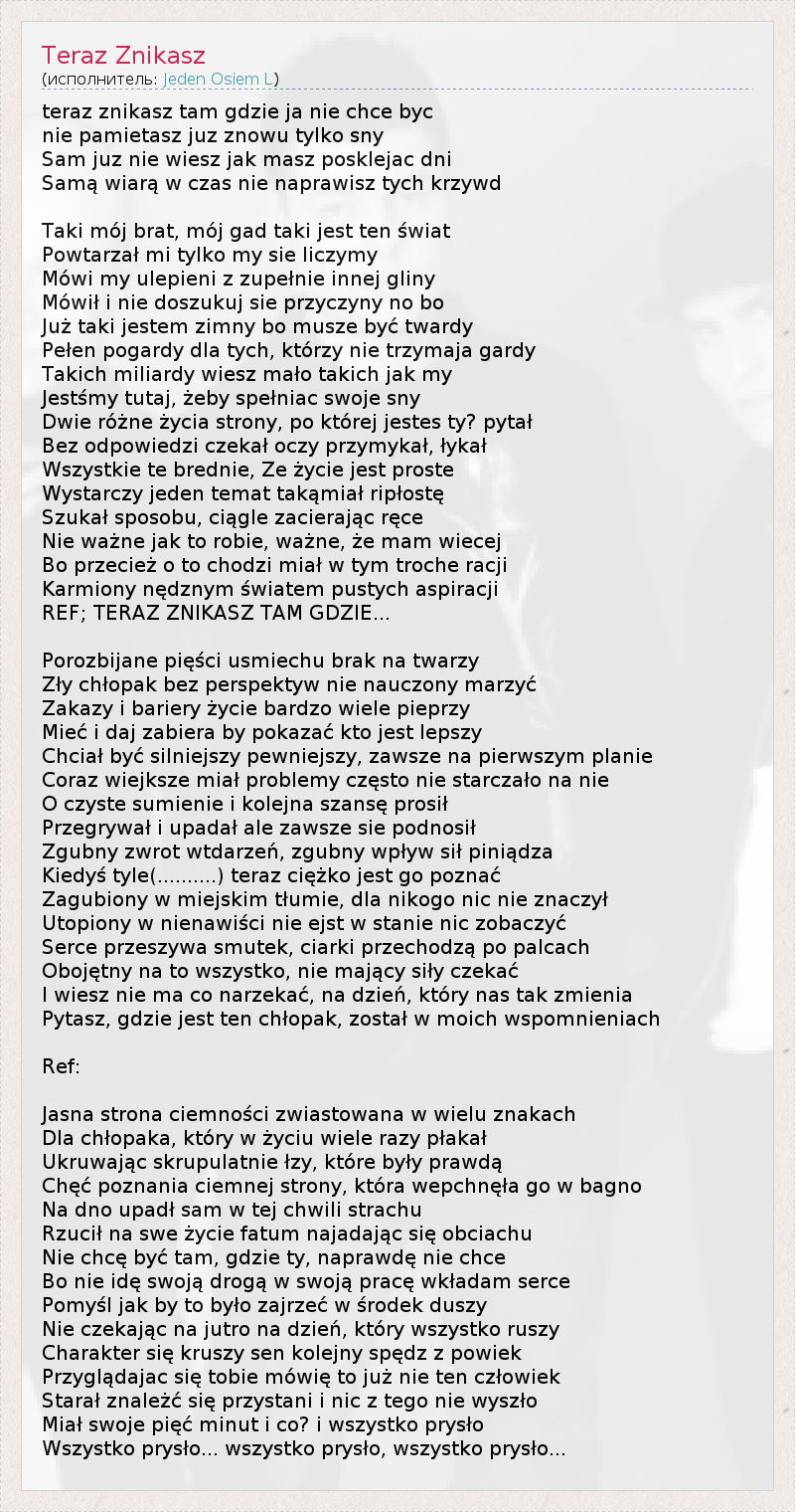 REF ; TERAZ ZNIKASZ ТАМ GDZIE ...