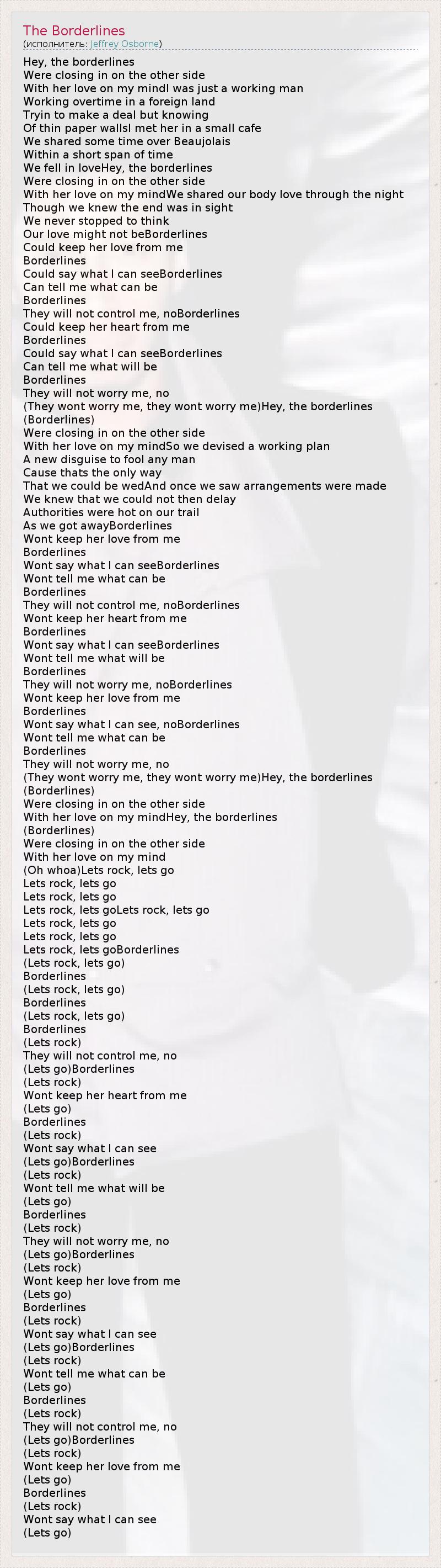 А как ты думаешь, о чем песня "The Borderlines" ?