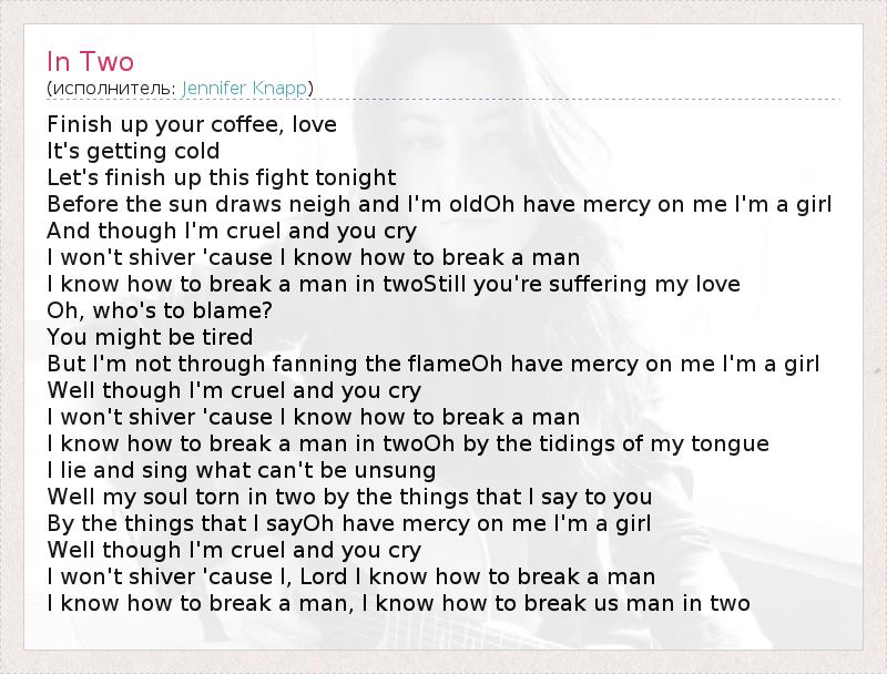 Before the sun draws neigh and I'm oldOh have mercy on me I'm a girl