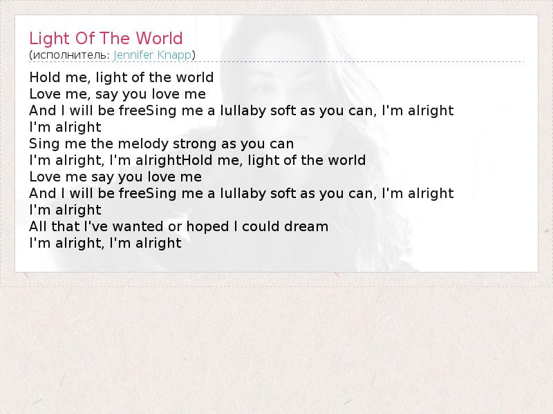 А как ты думаешь, о чем песня "Light Of The World" ?