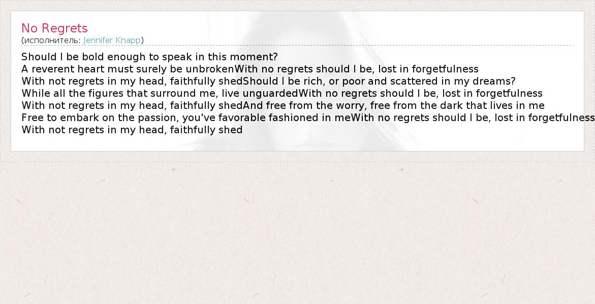 А как ты думаешь, о чем песня "No Regrets" ?