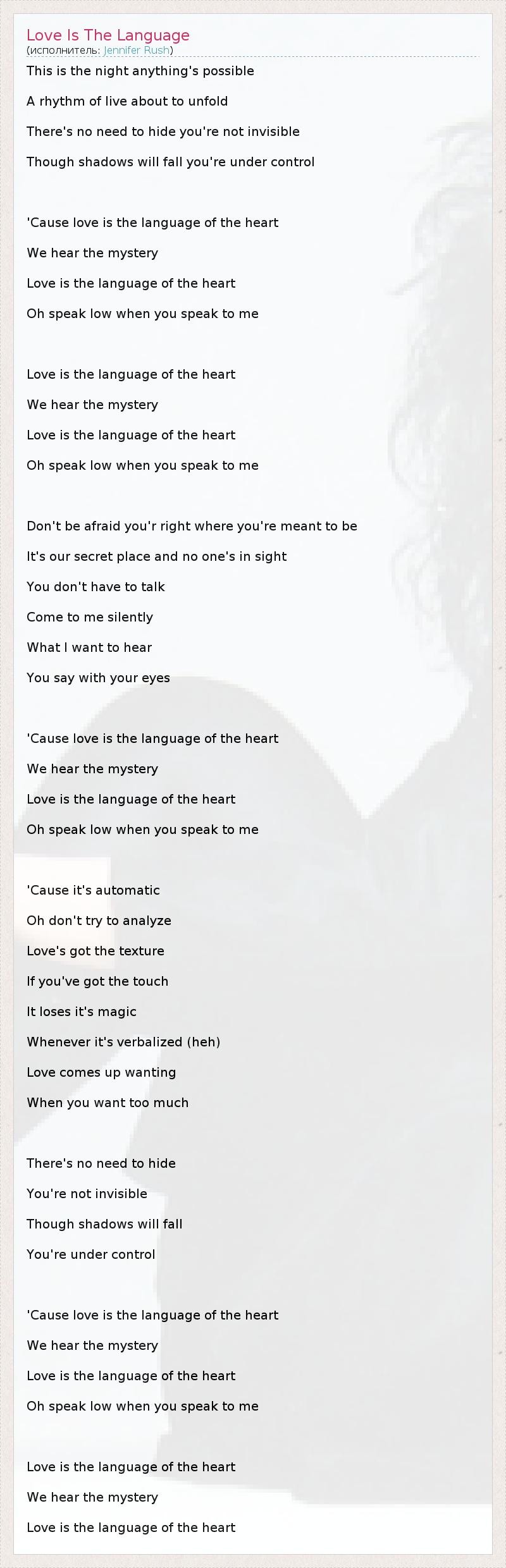 А как ты думаешь, о чем песня "Love Is The Language" ?