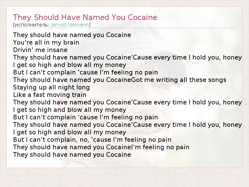 А как ты думаешь, о чем песня "They Should Have Named You Cocaine" ?