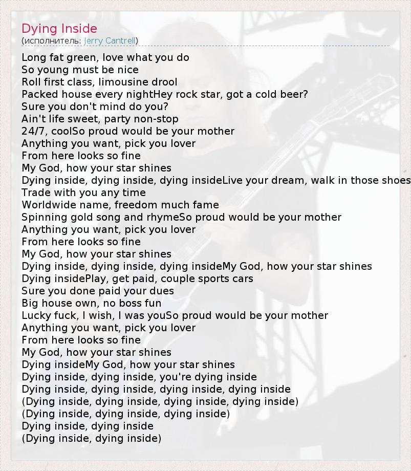 А как ты думаешь, о чем песня "Dying Inside" ?