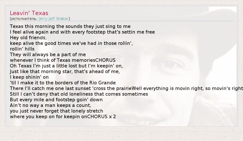 А как ты думаешь, о чем песня "Leavin' Texas" ?