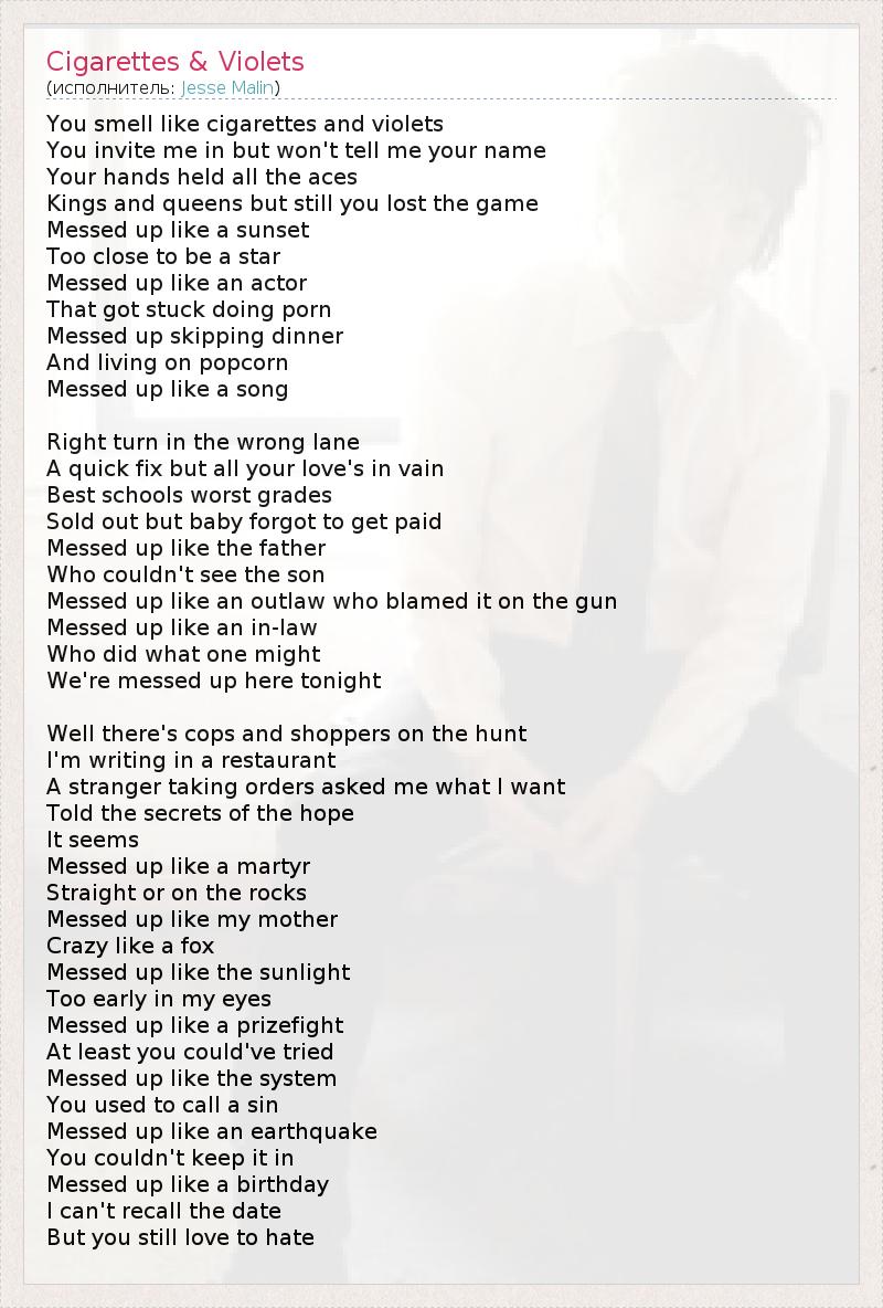 А как ты думаешь, о чем песня "Cigarettes & Violets" ?