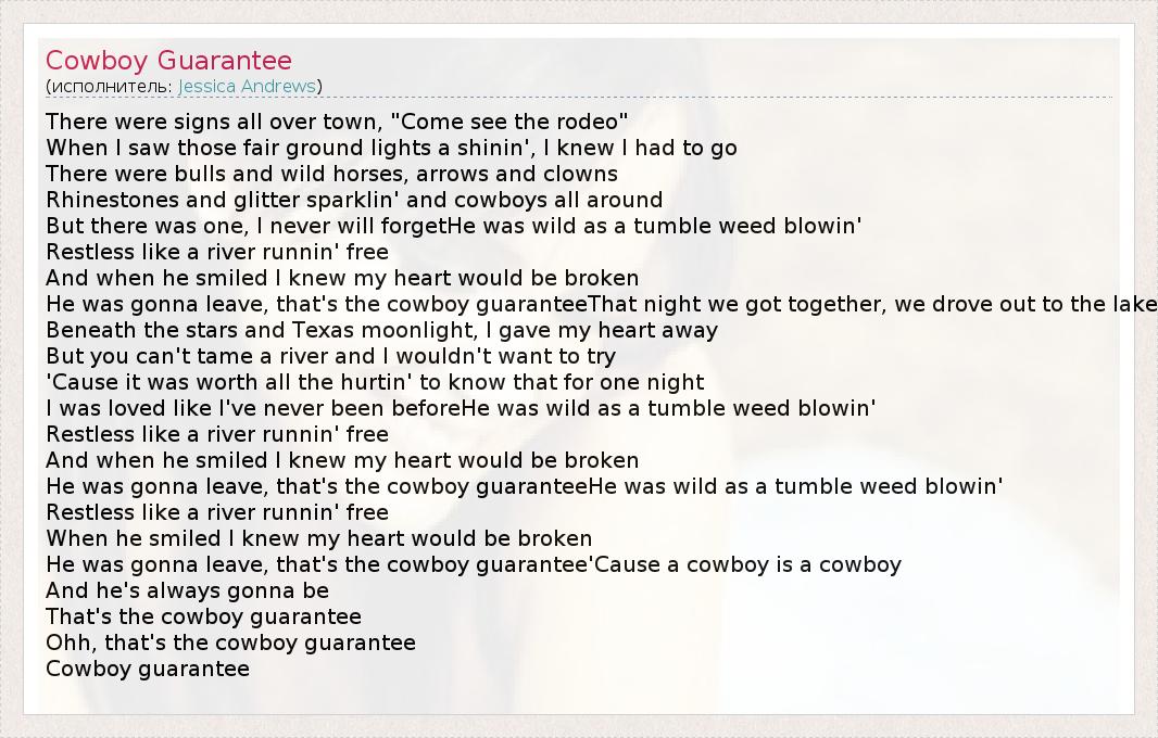 А как ты думаешь, о чем песня "Cowboy Guarantee" ?