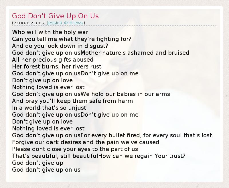 А как ты думаешь, о чем песня "God Don't Give Up On Us" ?