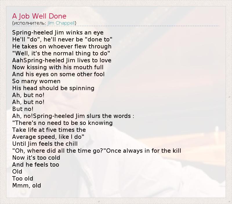 А как ты думаешь, о чем песня "A Job Well Done" ?