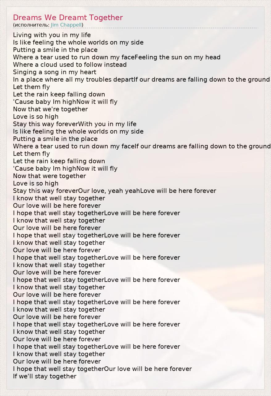 А как ты думаешь, о чем песня "Dreams We Dreamt Together" ?