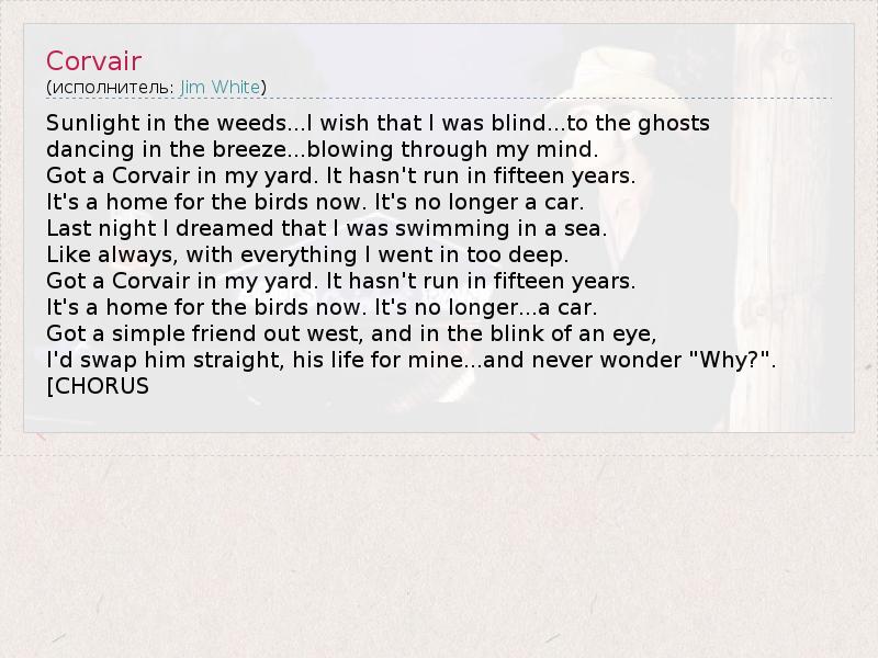 А как ты думаешь, о чем песня "Corvair" ?