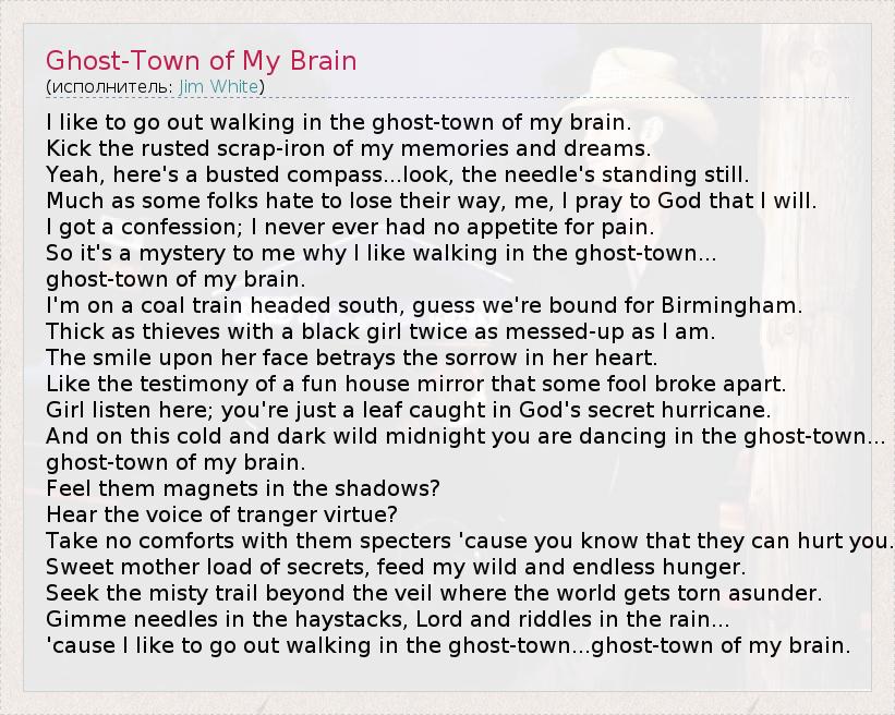 А как ты думаешь, о чем песня "Ghost-Town of My Brain" ?