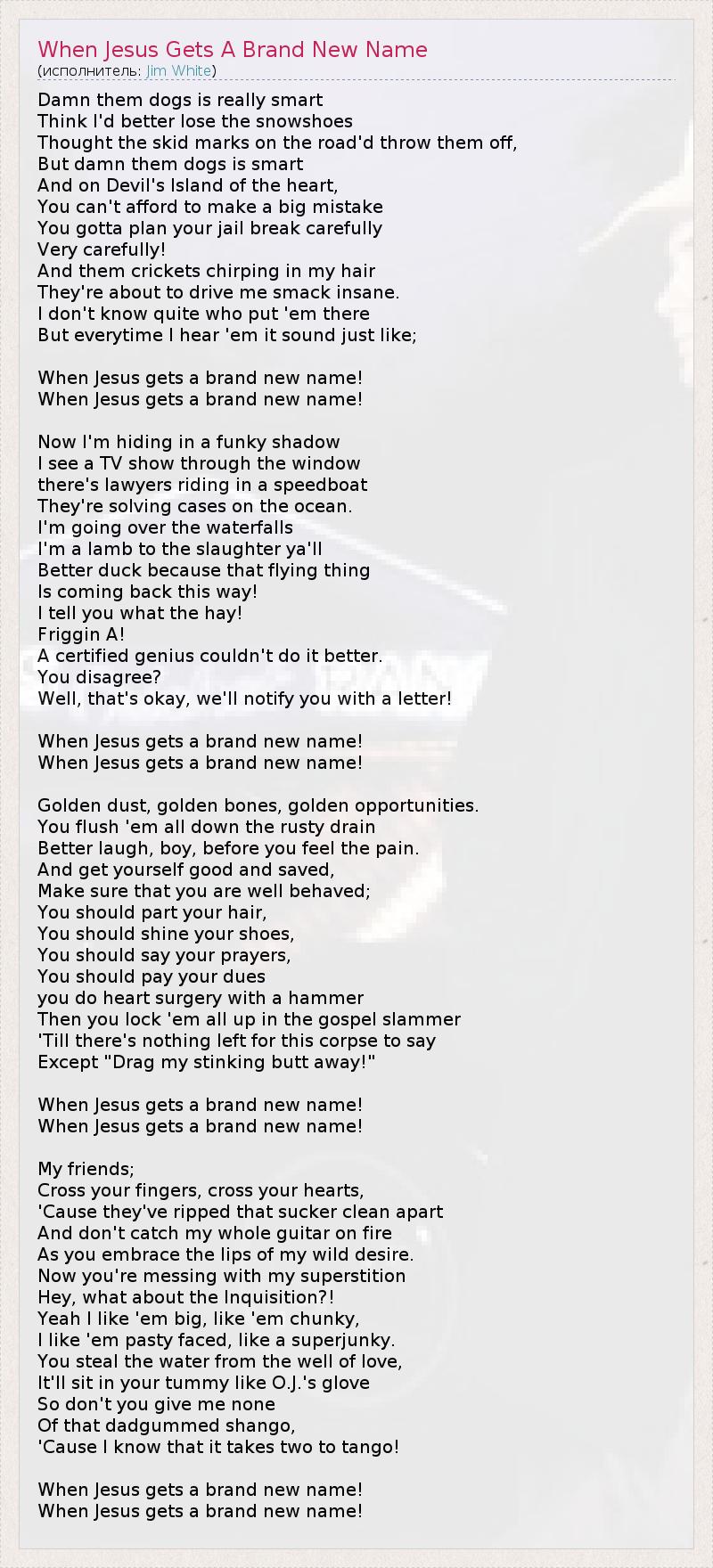 А как ты думаешь, о чем песня "When Jesus Gets A Brand New Name" ?