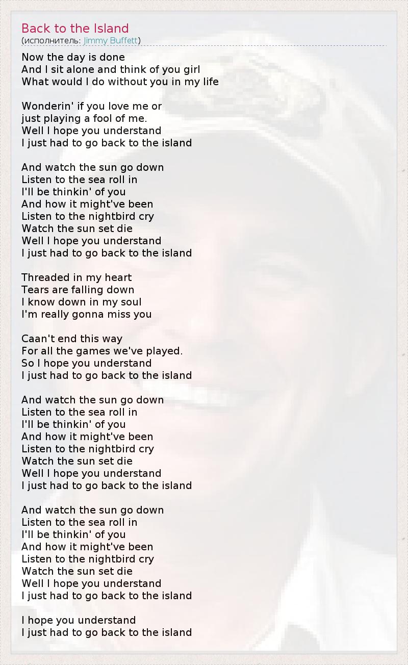 А как ты думаешь, о чем песня "Back to the Island" ?