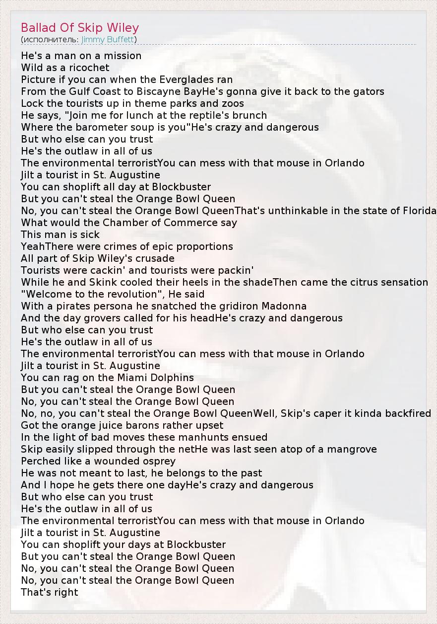 А как ты думаешь, о чем песня "Ballad Of Skip Wiley" ?