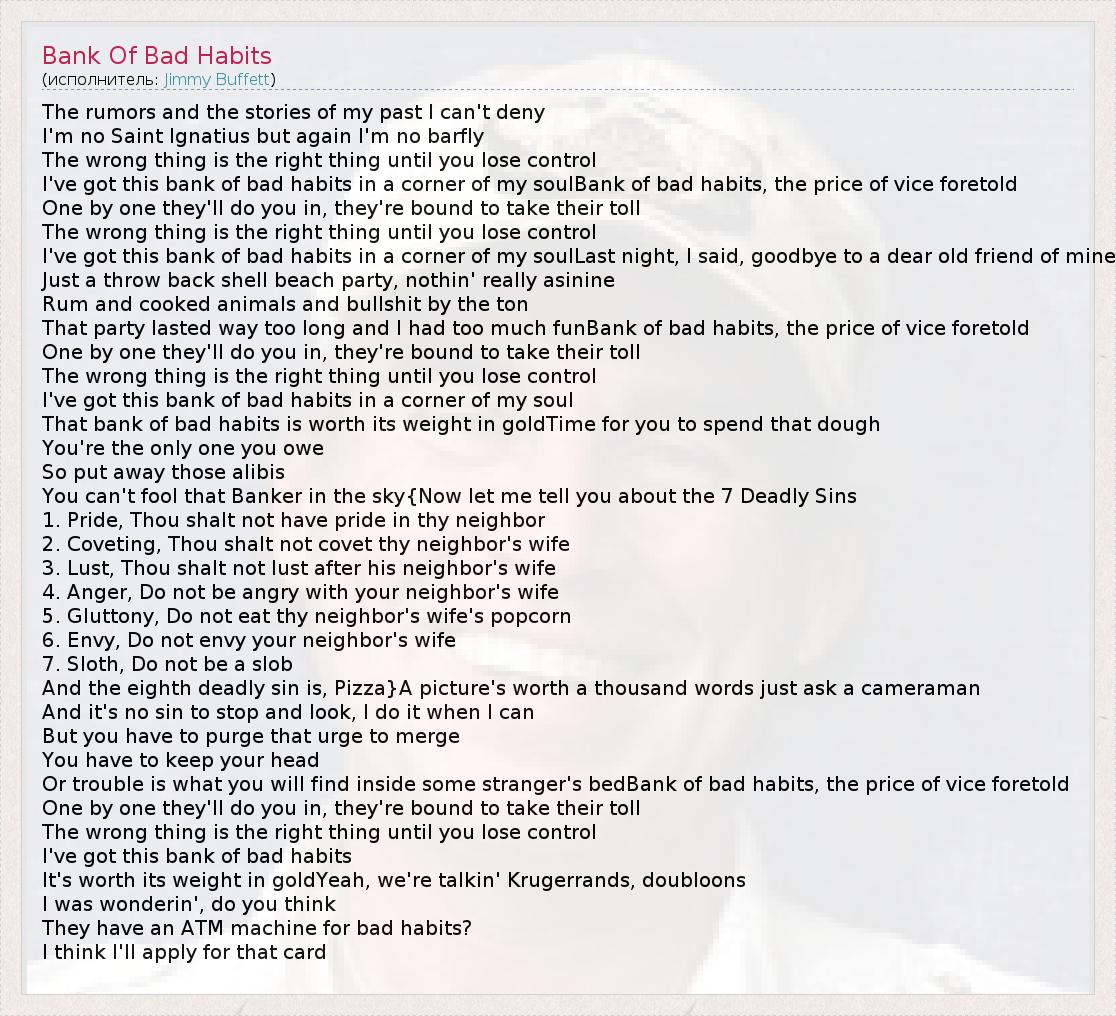 А как ты думаешь, о чем песня "Bank Of Bad Habits" ?