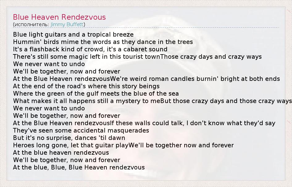 А как ты думаешь, о чем песня "Blue Heaven Rendezvous" ?