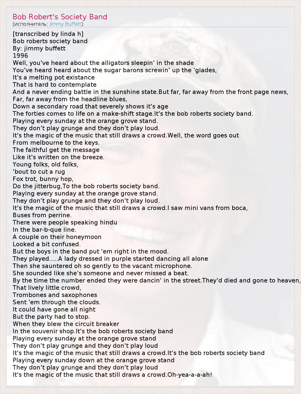 ГлавнаяИсполнителиJimmy BuffettBob Robert's Society Band