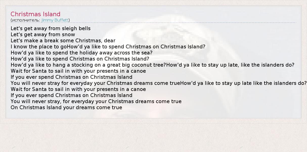 А как ты думаешь, о чем песня "Christmas Island" ?