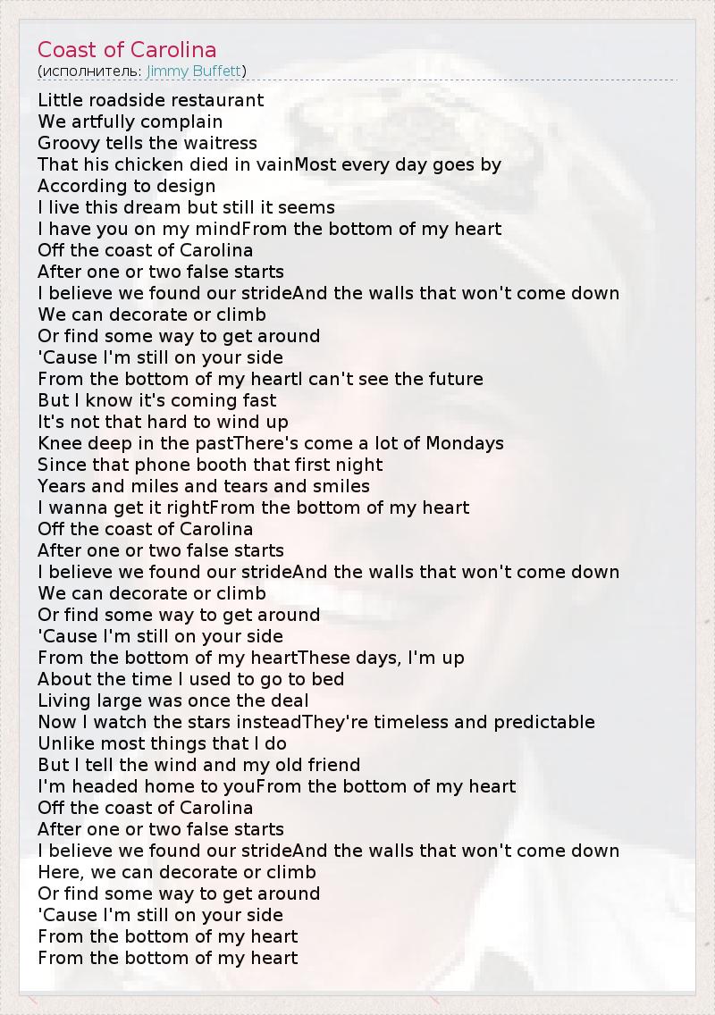 А как ты думаешь, о чем песня "Coast of Carolina" ?
