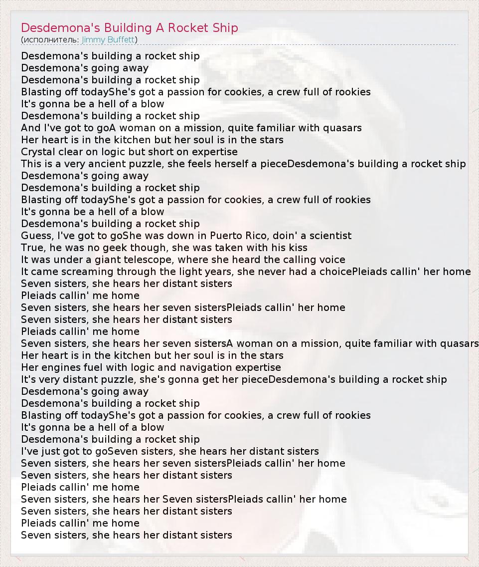 ГлавнаяИсполнителиJimmy BuffettDesdemona's Building A Rocket Ship