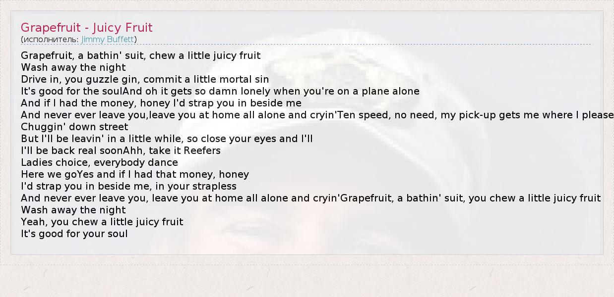 ГлавнаяИсполнителиJimmy BuffettGrapefruit - Juicy Fruit