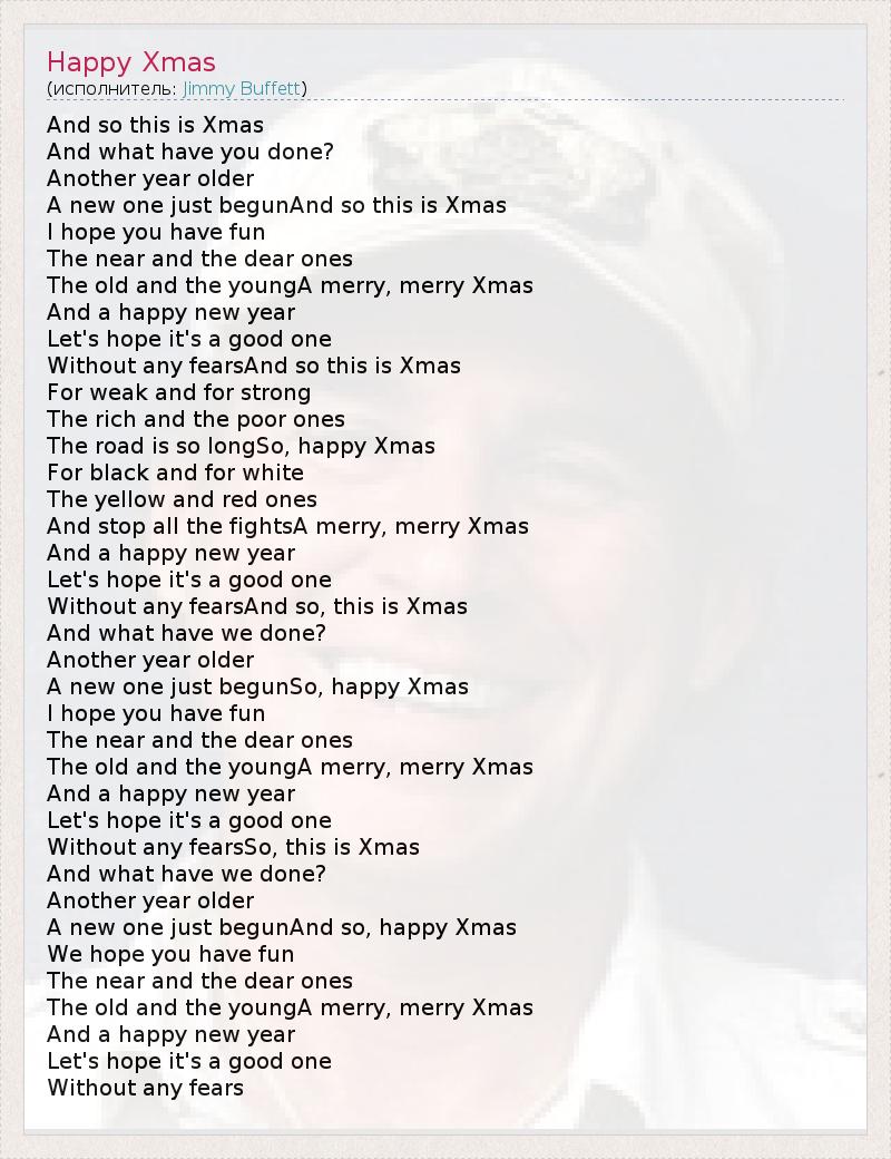 And so this is Xmas And what have you done? Another year older A new one just begunAnd so this is Xmas I hope you have fun The near and the dear ones The old and the youngA merry, merry Xmas And a happy new year Let's hope it's a good one Without any fearsAnd so this is Xmas For weak and for strong The rich and the poor ones The road is so longSo, happy Xmas For black and for white The yellow and red ones And stop all the fightsA merry, merry Xmas And a happy new year Let's hope it's a good one Without any fearsAnd so, this is Xmas And what have we done? Another year older A new one just begunSo, happy Xmas I hope you have fun The near and the dear ones The old and the youngA merry, merry Xmas And a happy new year Let's hope it's a good one Without any fearsSo, this is Xmas And what have we done? Another year older A new one just begunAnd so, happy Xmas We hope you have fun The near and the dear ones The old and the youngA merry, merry Xmas And a happy new year Let's hope it's a good one Without any fears