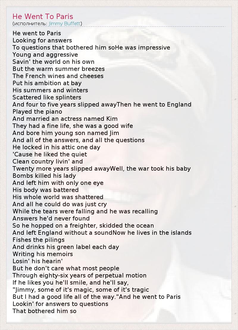 А как ты думаешь, о чем песня "He Went To Paris" ?