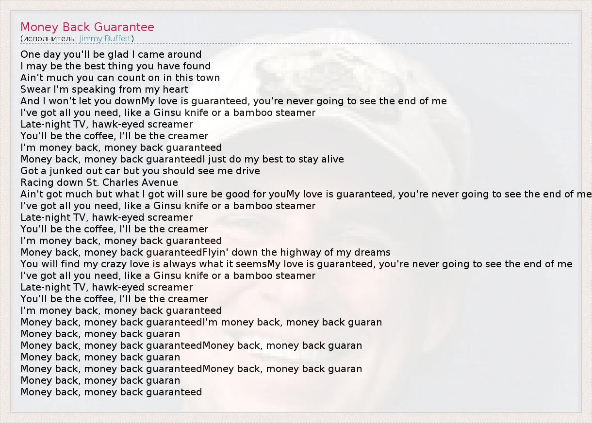А как ты думаешь, о чем песня "Money Back Guarantee" ?