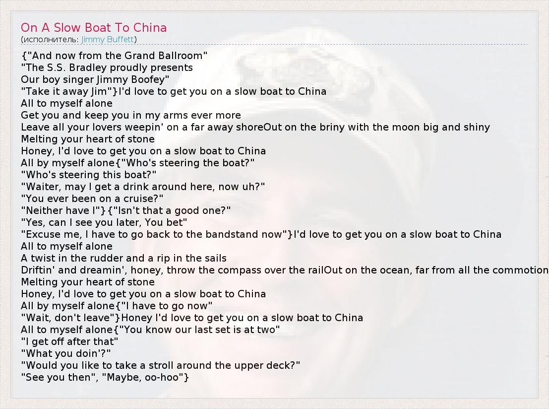 А как ты думаешь, о чем песня "On A Slow Boat To China" ?