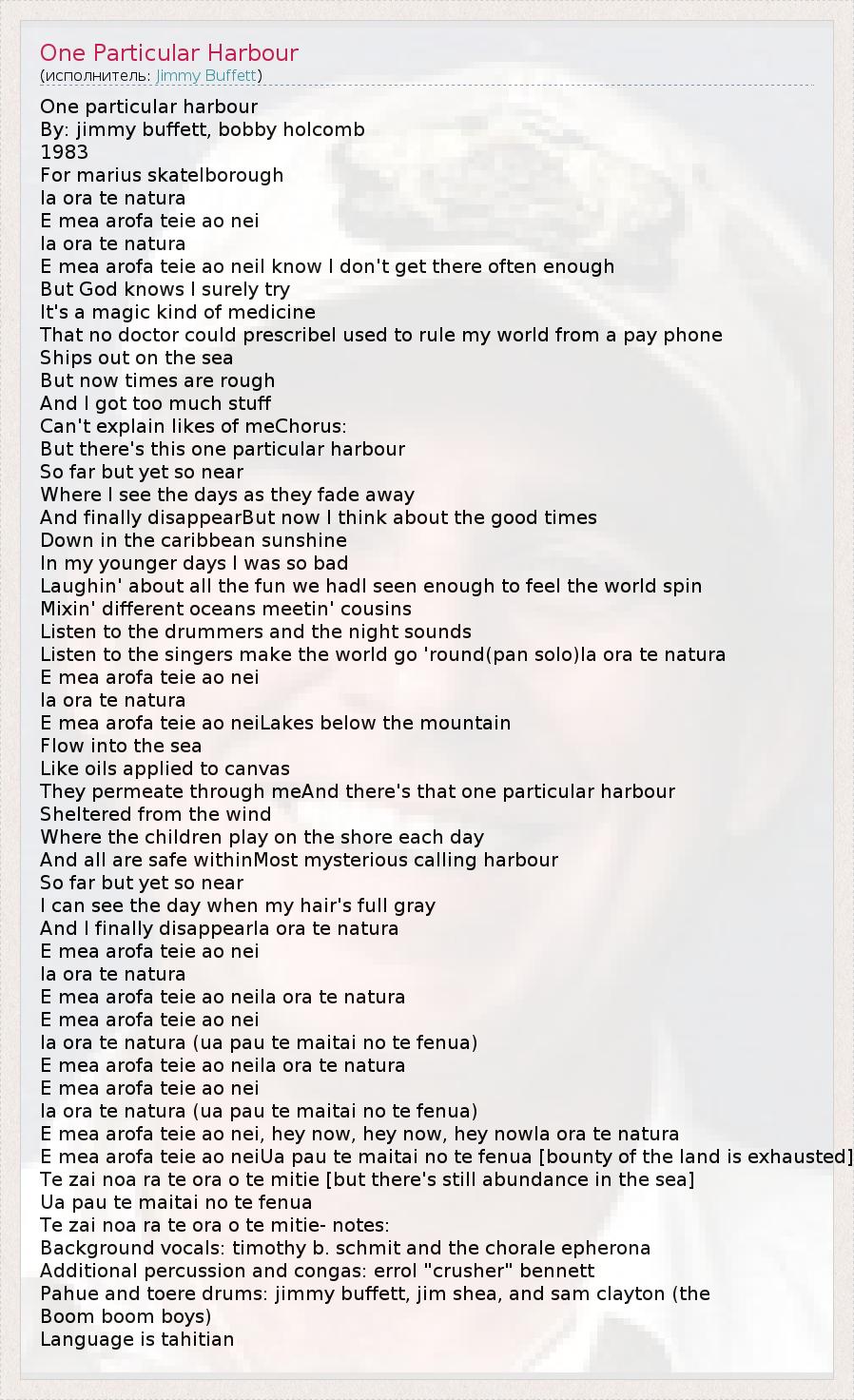 А как ты думаешь, о чем песня "One Particular Harbour" ?