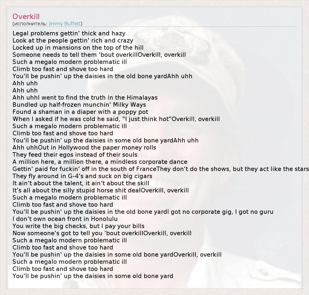 You'll be pushin' up the daisies in some old bone yardOverkill, overkill