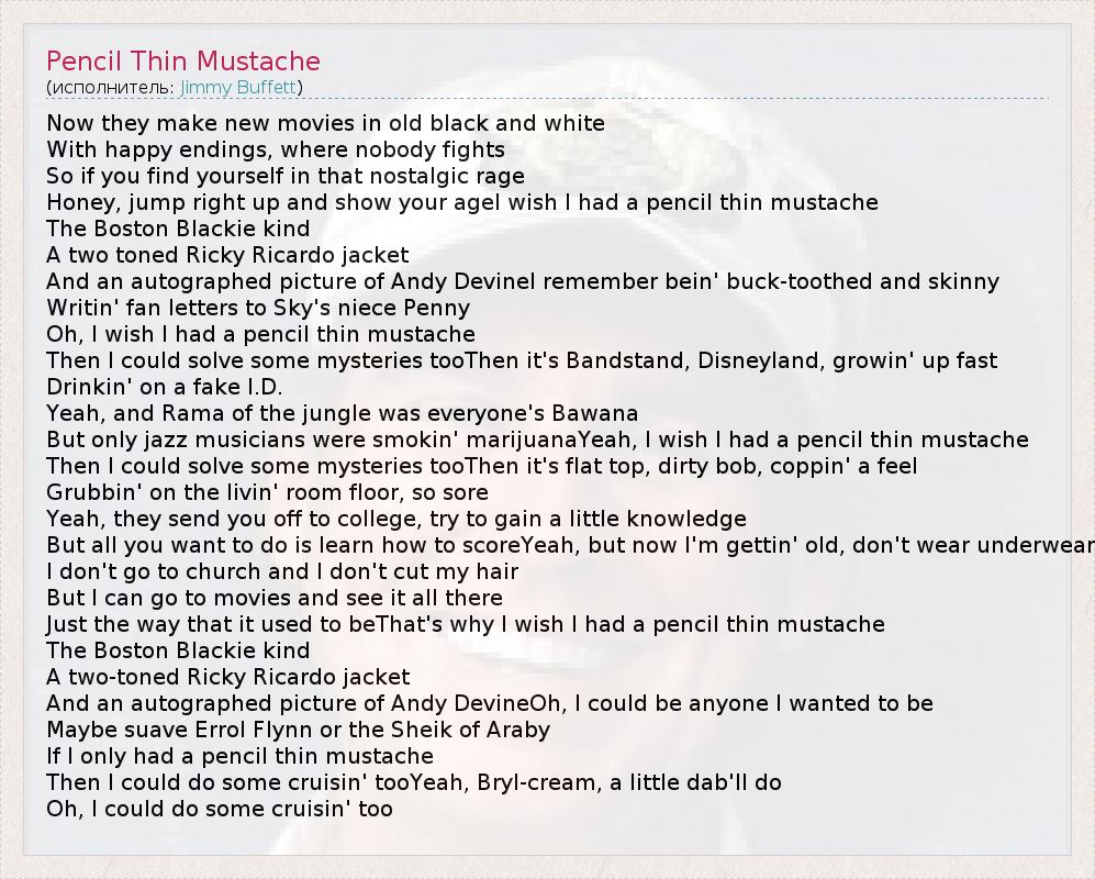 А как ты думаешь, о чем песня "Pencil Thin Mustache" ?